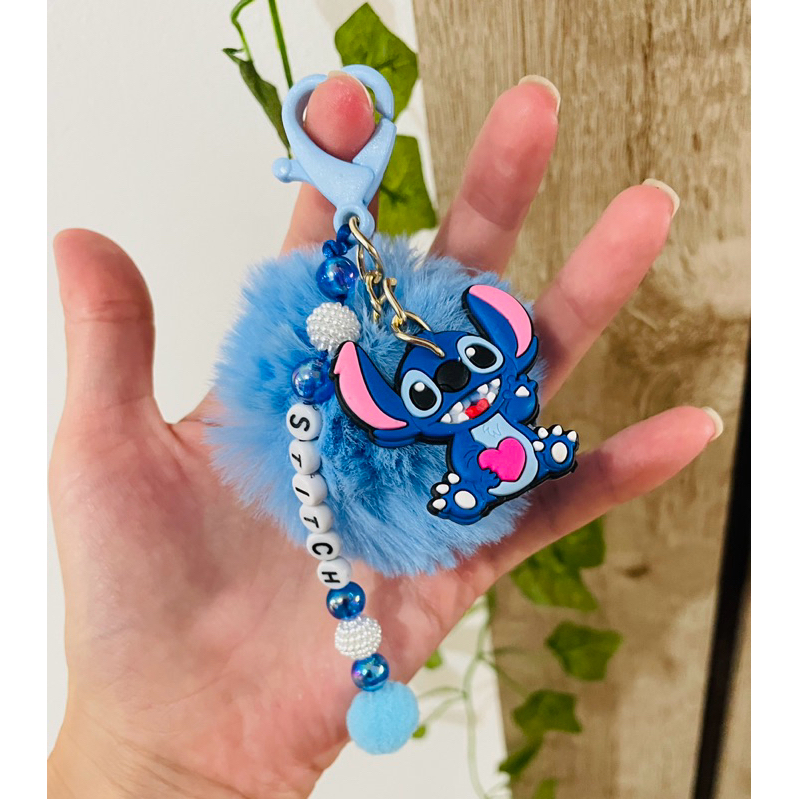 Chaveiro Stitch e Angel Capivara Pompom Personalizado com Nome