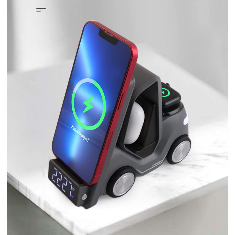15 Carga Rápida 5 Em 1 Carregador Sem Fio Para Carro Com Luz led Fone De Ouvido iwatch Relógio