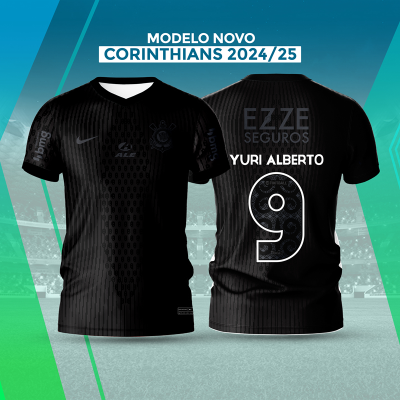 Camiseta do Corinthians De Time Futebol Masculina 2023 - CORINTHIANS - PRETA E BRANCA - MODELO NOVO- CAMISA II