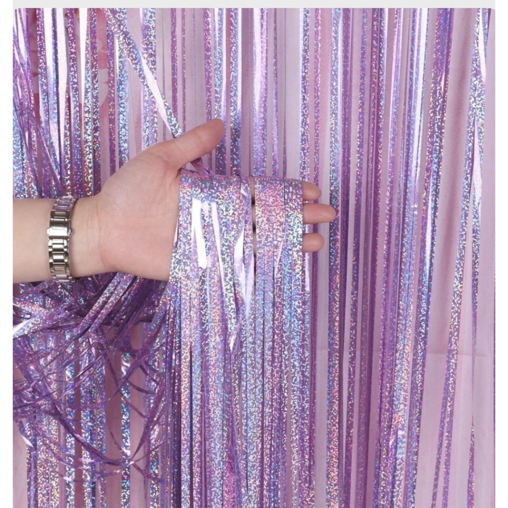 Kit com 1/2/ 3Decoração festa/casamento/Dia Das Mães E Dia Namorado, Unidades Cortina Metalizada Holografica Franja 2x1m e eventos 3D Varias Cores e Modelos