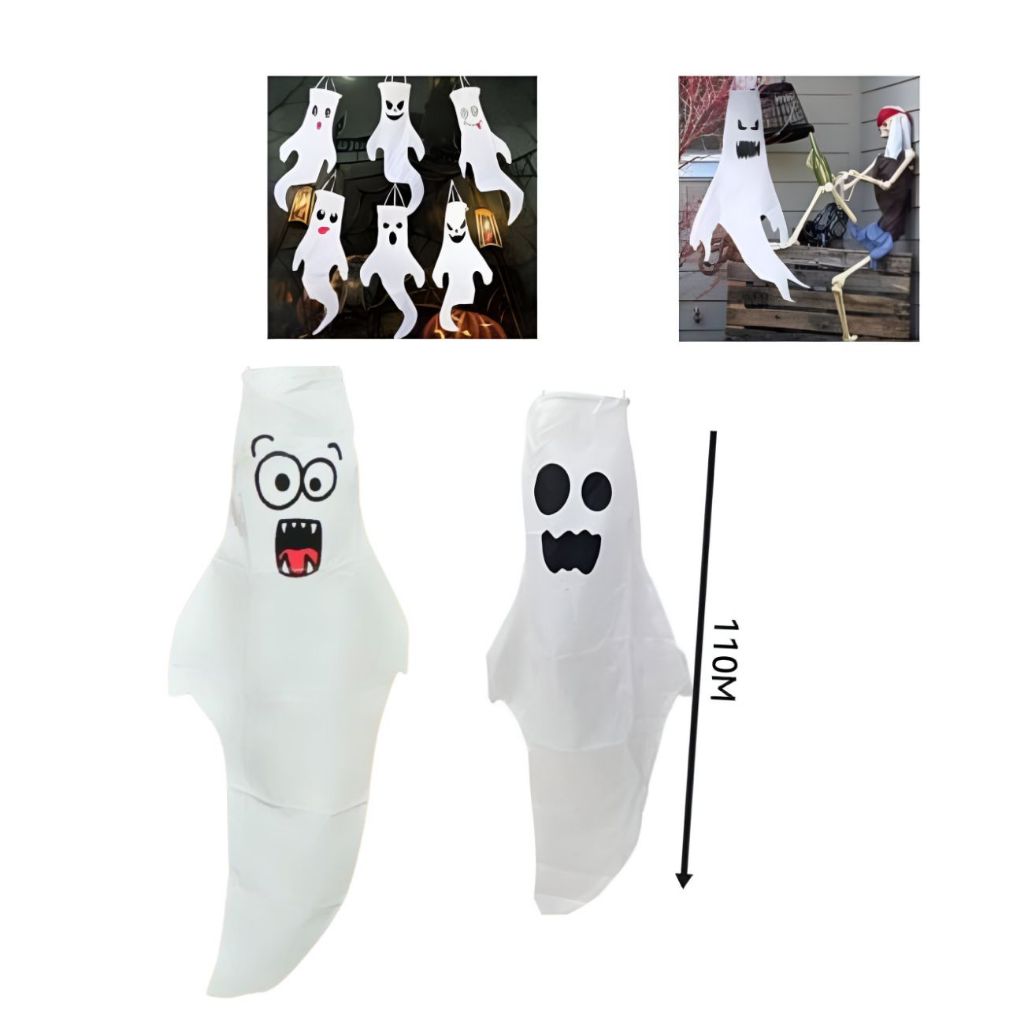 Kit 2 Fantasmas 1,10 Metro Fantasma para Pendurar Enfeite Halloween Decoração Festa Halloween dia das Bruxas Decorações Fantasmas Assustador