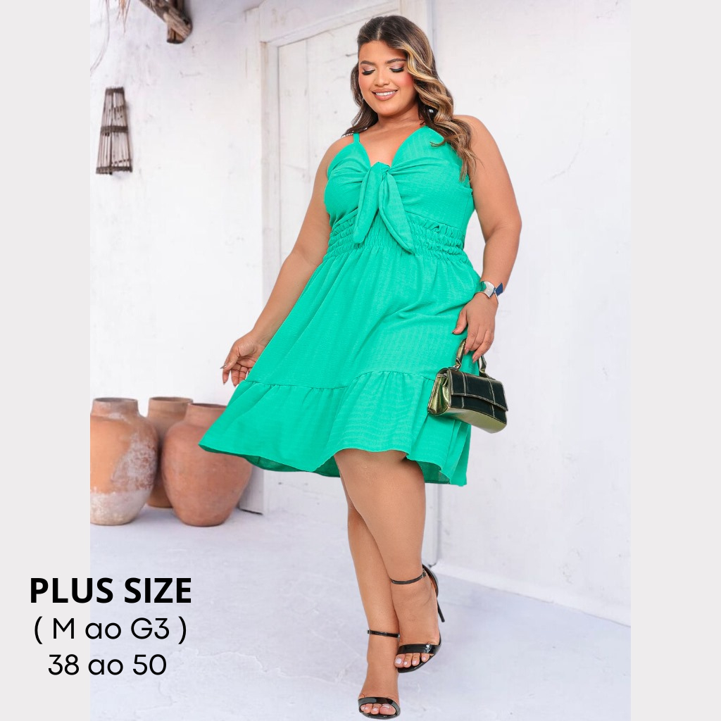 Vestido Plus Size Feminino Rodado Decote Em V Alça Regulável Tecido Crepe Duna