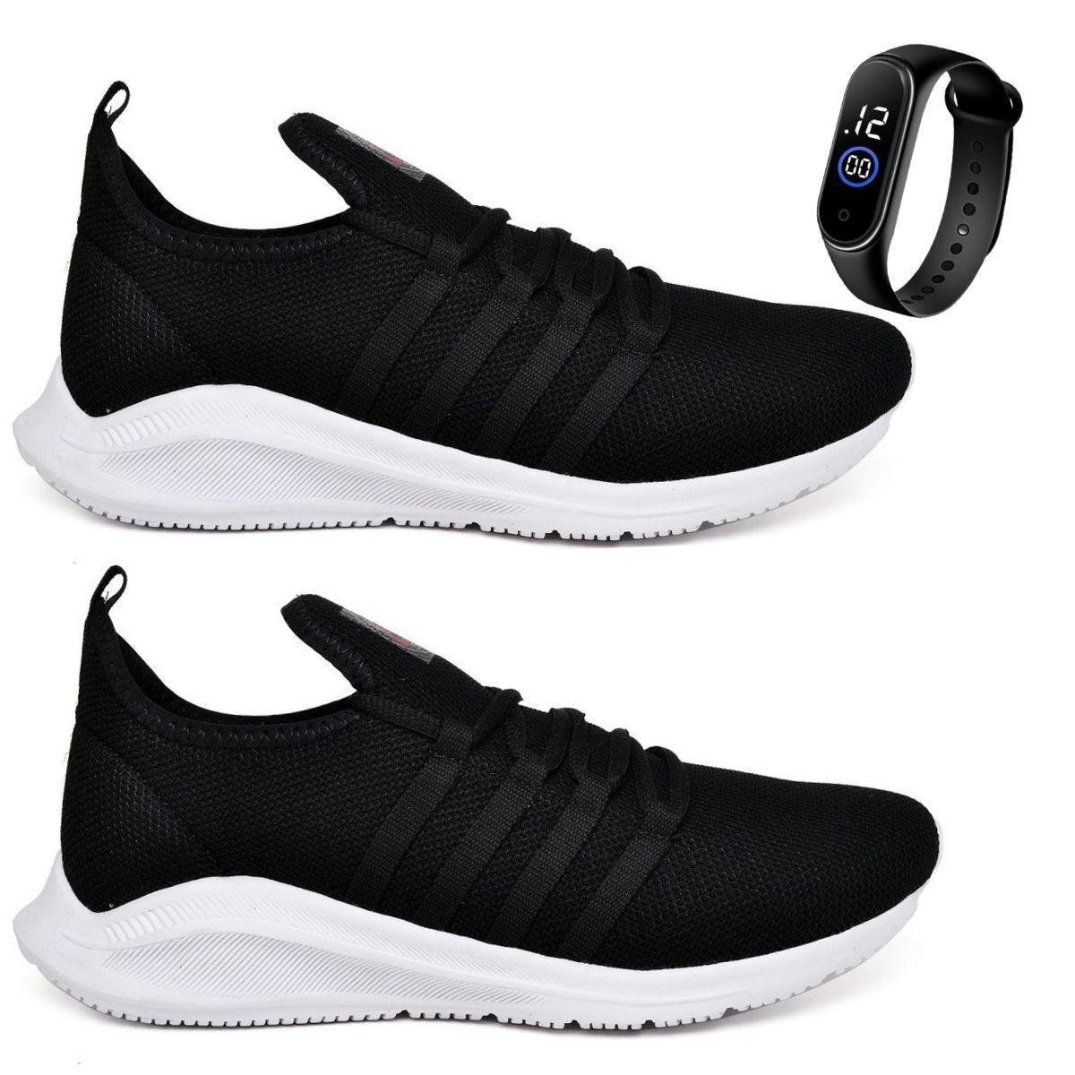 Kit 2 Pares Tênis Esportivo Masculino Para Academia Caminhada Leve Confortável + Relógio Digital