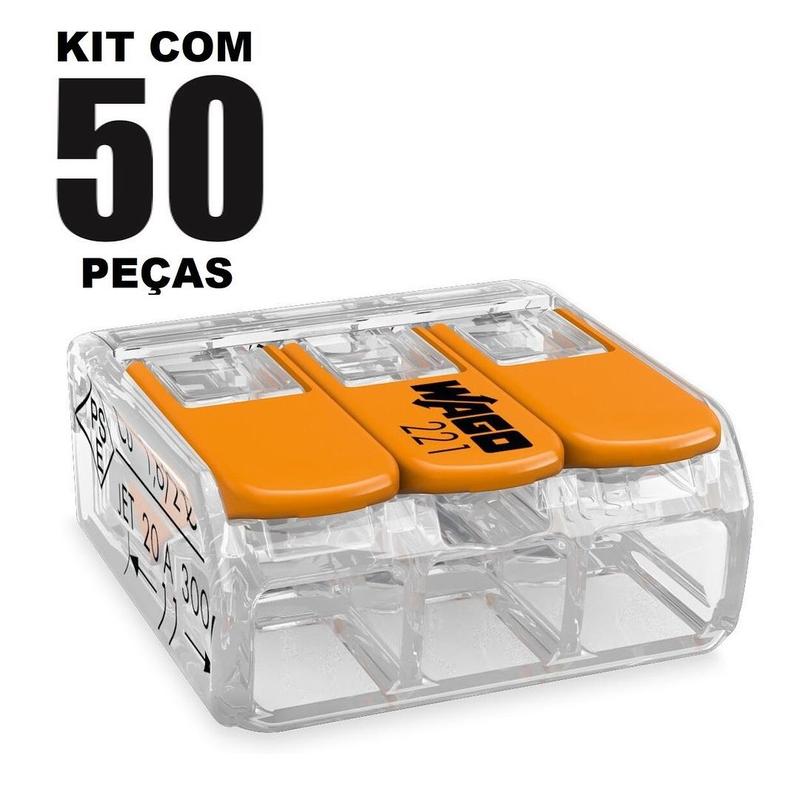 50un Conector Wago 221-413 3 vias 32A/450V Emenda Derivação Original Caixa Fechada e Lacrada