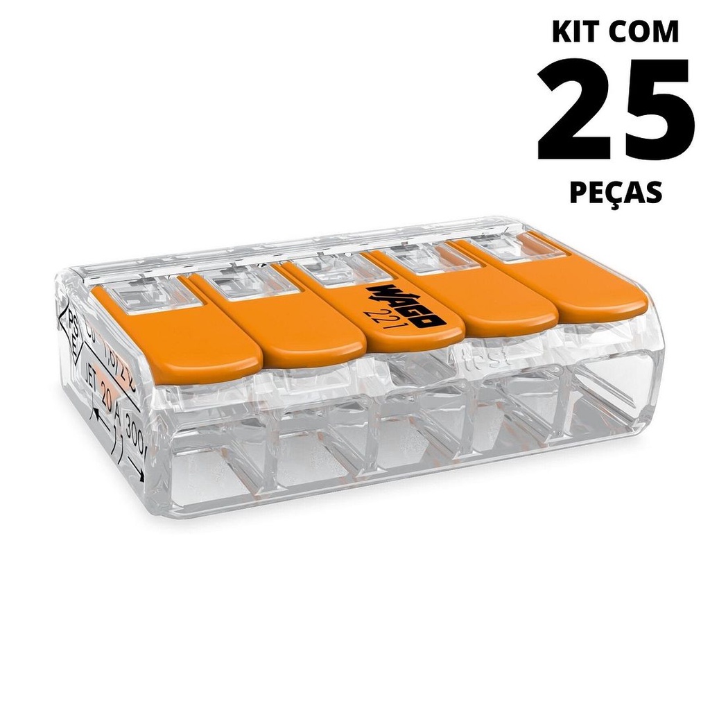 Conector Wago 221-415 5 polos até 4mm- Caixa com 25 peças