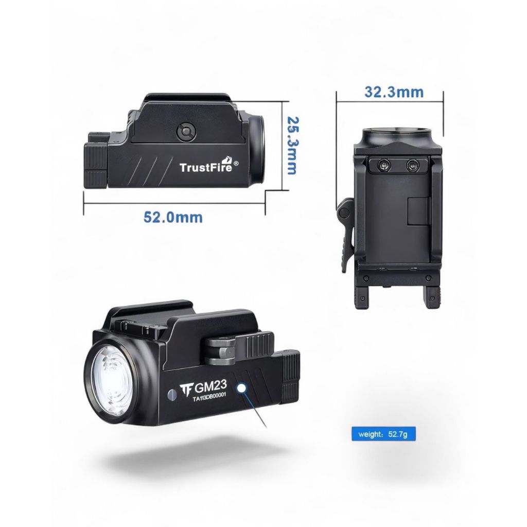 Lanterna Tática para Pistola Trustfire Gm23 800 Lm - PRETA