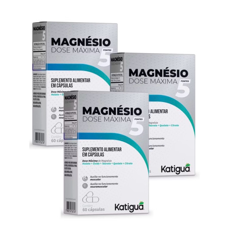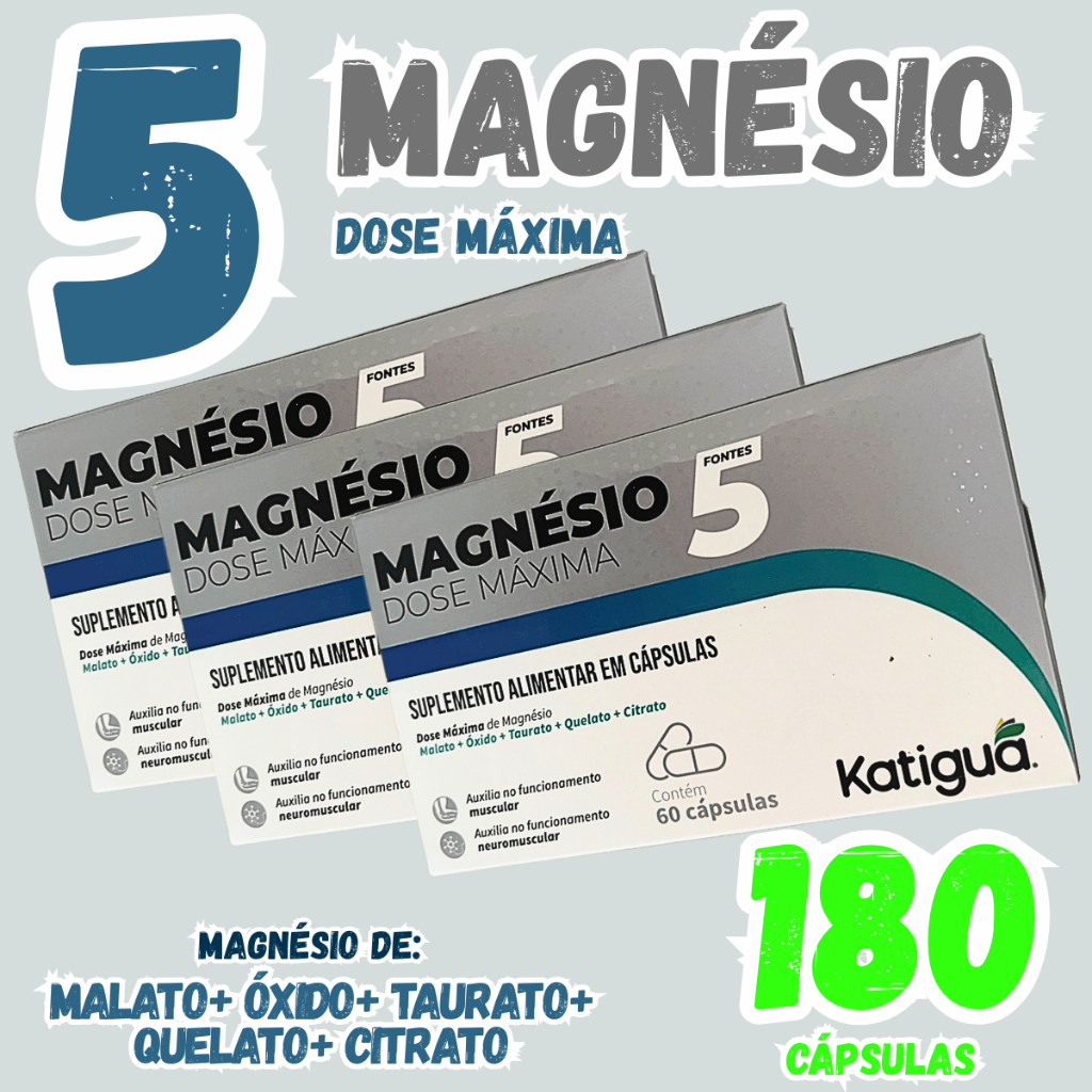 Kit 3 Magnésio 5 Fontes Dose Máxima Malato + Óxido + Taurato + Quelato + Citrato 60 cápsulas Katiguá