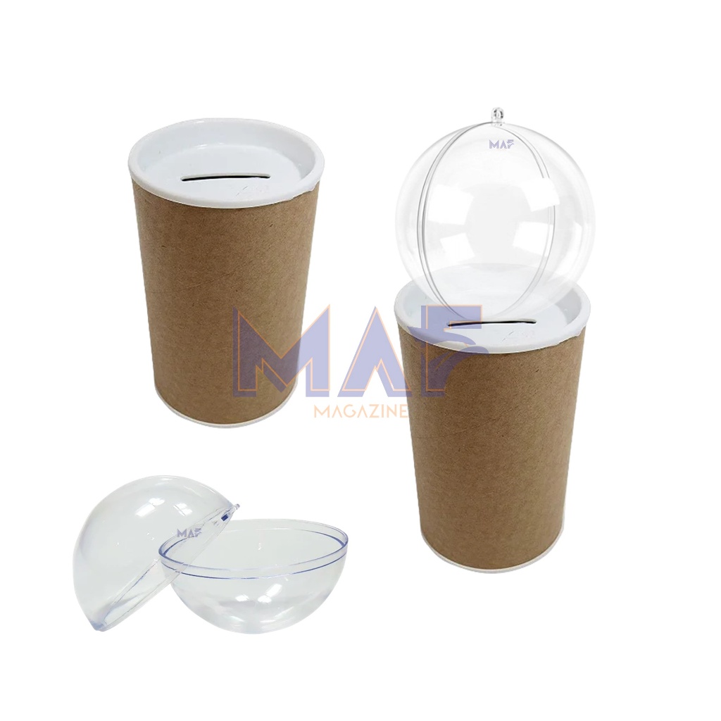 Kit 10 Cofrinho 10x6 - 10 Esfera Bola Acrilica 6,5cm
