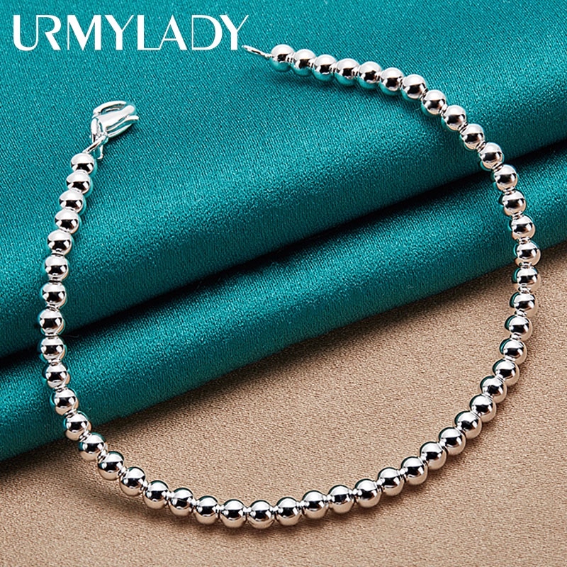 URMYLADY Prata Esterlina 925 4mm Pulseira De 20CM Com Miçangas Lisas Para Festa De Noivado Feminino Jóias De Moda