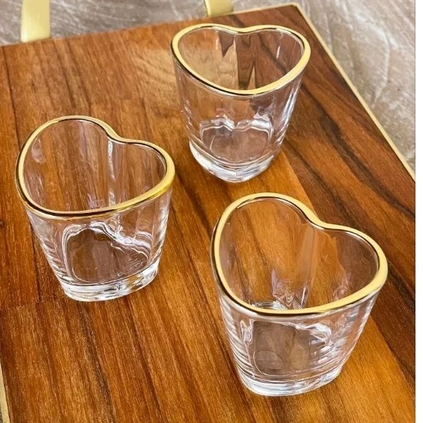 Kit 3 copo shot de vidro com borda Dourada 50 ml Lyor