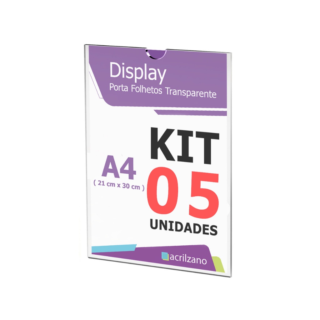 Kit com 5 Display Expositor Acrilico L Tamanho A6 10x15cm Vertical