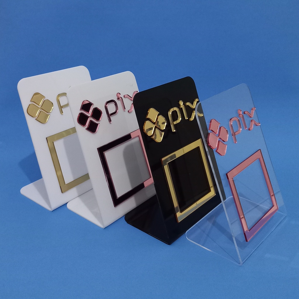 Placa Expositor de Acrílico para QRCode Pix Moldura 5 X 6 cm