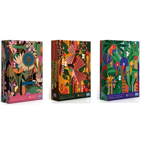 Quebra-Cabeça Puzzle Coleção Maravilhas Tropicais Kit Flores-Frutos-Folhas 3x500 peças Nano – Naia Ceschin - Lançamento 2022.