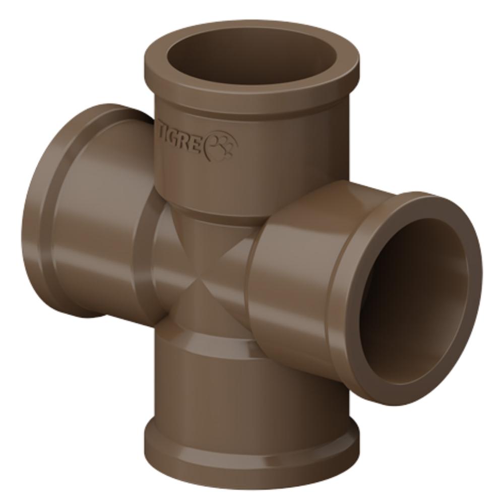 Cruzeta Conexão Soldável PVC Marrom Para Canos E Tubos De Água Fria 3/4” Polegadas 25mm Tigre
