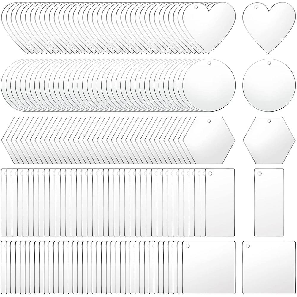 10pcs Acrílico Em Branco Pingentes De Chaveiro Transparentes Inclui Rectângulo Quadrado De Coração Círculo Estrela Forma De Hexágono Para Artesanato De Bricolage