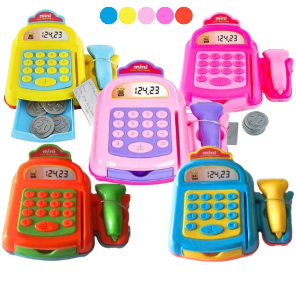 Brinquedo Mini Caixa Registradora Infantil Moedas Cartão Bip Faz de Conta p/ Dia das Crianças Menina Menino Aniversário