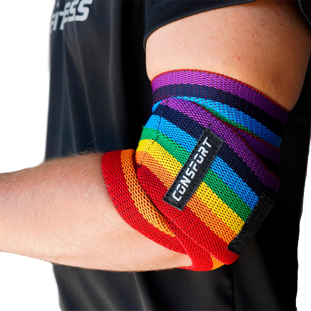 Par de Cotoveleira para Musculação Tensor Protetor Fitness Tendinite Treino Academia Prevenção Recuperação Arco Iris
