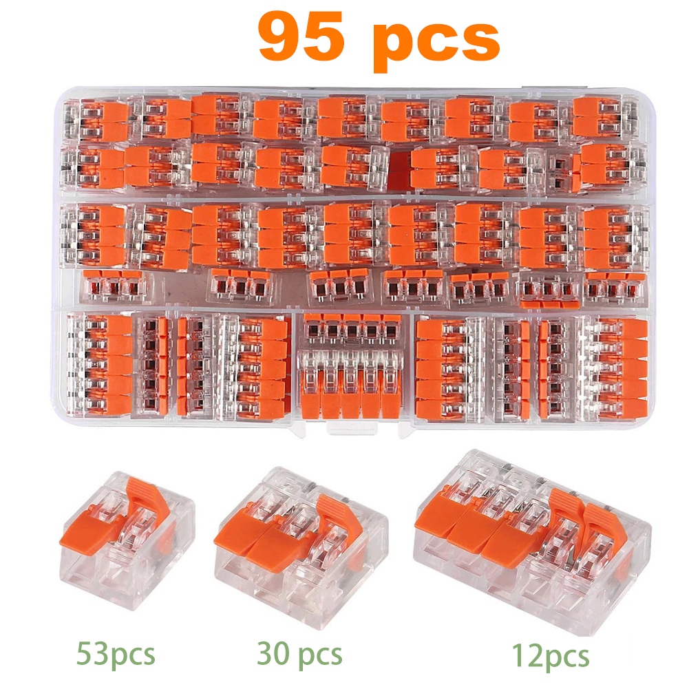 Kit 95/75 Peças Conector Elétrico Emenda Wago 221 Original 1, 2, 3 e 5 vias - 4mm e 6mm
