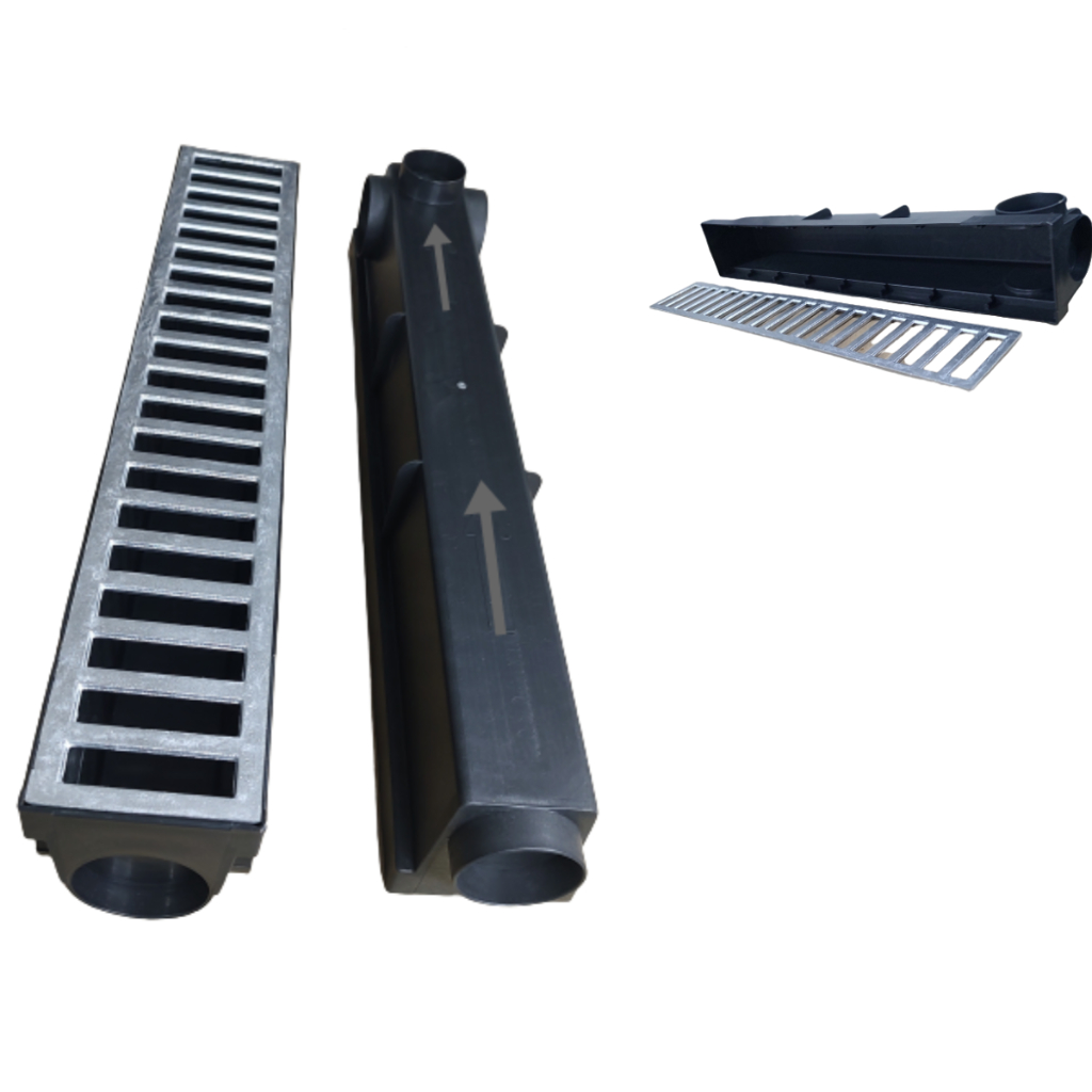 Ralo Linear 8x100 grelha Alumínio + Coletor para piscina e garagem (2 Pçs 50cm)