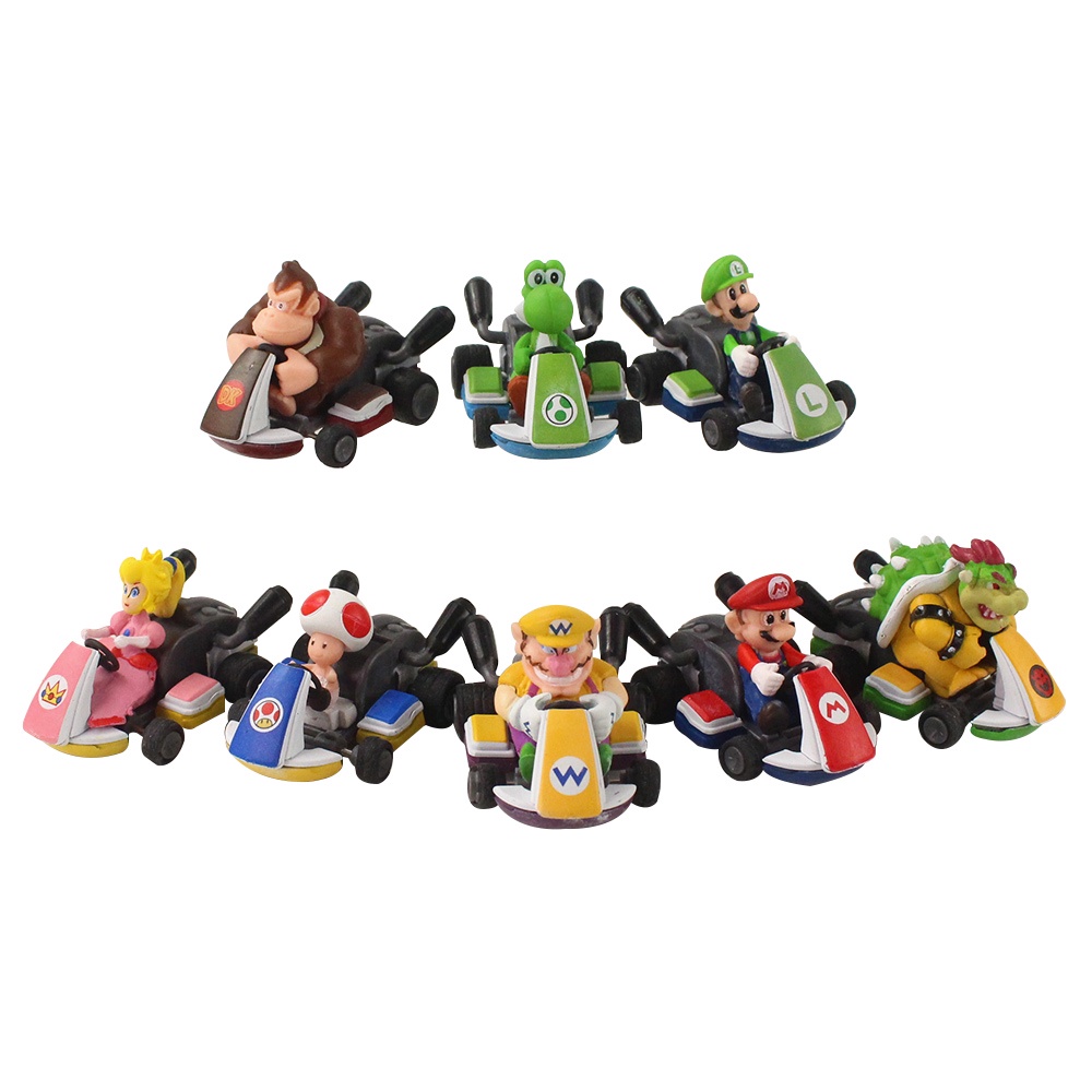 8 Pçs/Set Japão Nintendo Super Mario Bros Luigi Yoshi Bowser Koopa Toad Peach Donkey kong Puxar Carros Voltar Jogo De Corrida PVC Figuras De Ação Modelo Bonecas Brinquedos