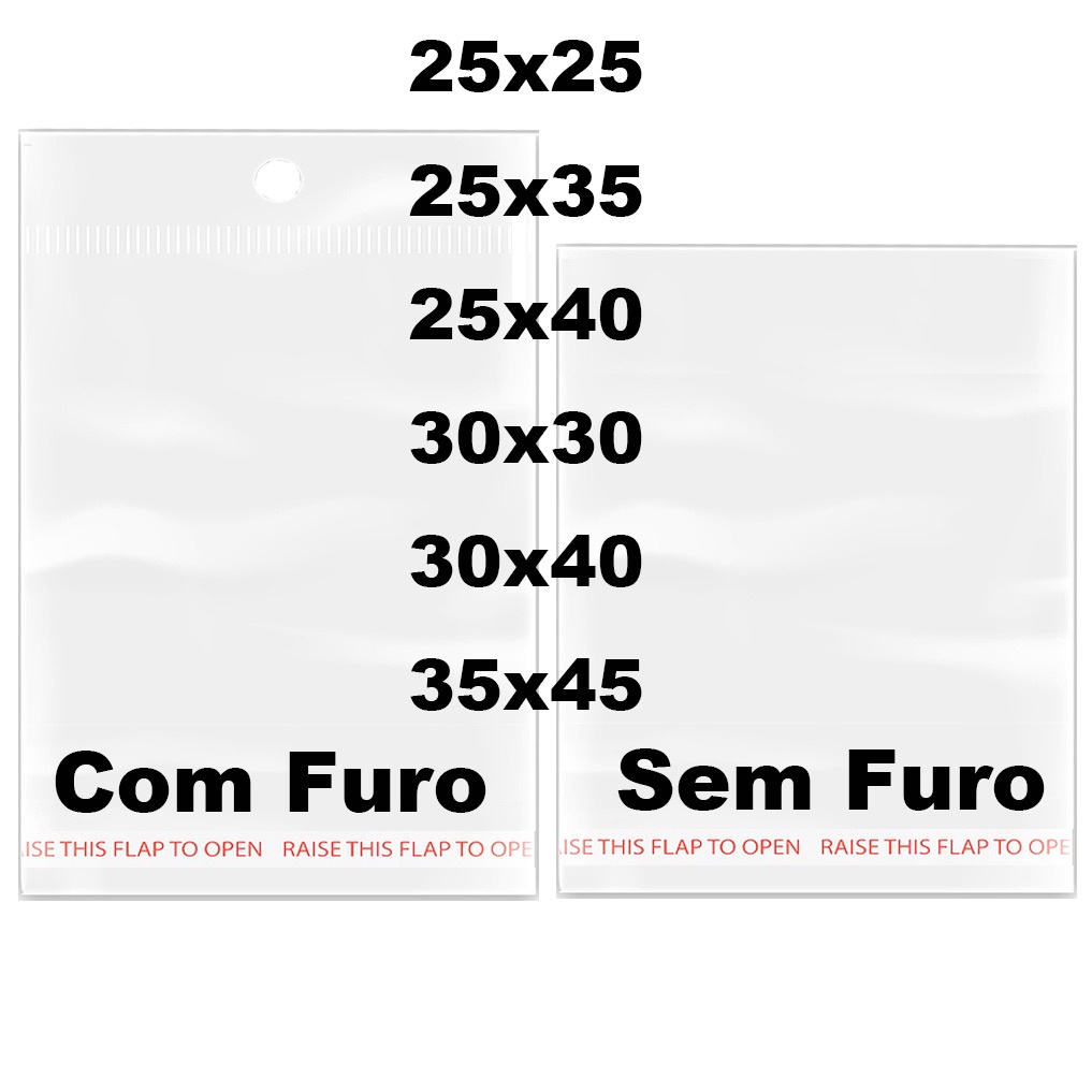 KIT 100 Saco Adesivo Saquinhos transparente FURO 25x25 25x40 25x35 30x30 30x40 35x45 25X30 FUROS SOLAPA para embalagem grande maior de Joias Bijuterias Presente