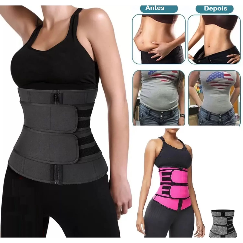 Cinta Modeladora Feminina com Zíper - Cintura Dupla de Compressão Ajustável para Redução Abdominal e Suporte com Alça