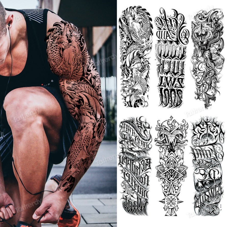 Tatuagem Temporária À Prova D'água Stcker Full Arm Sleeve Homem Mulher Flash Fake Decal Tattoos Transferência De Água Totem Preto Dragão Tribal Bem Estocado