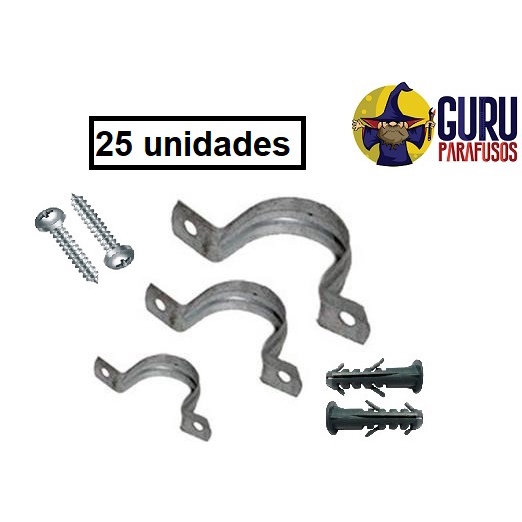 25 Peças - Abraçadeira Tipo U Para Canos - Tubos - Eletrodutos - Mangueiras - Com Parafusos e Buchas
