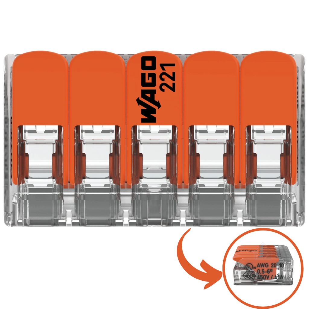 Conector Wago Compacto Emenda 5 Fios Modelo 221-615 6mm 2un