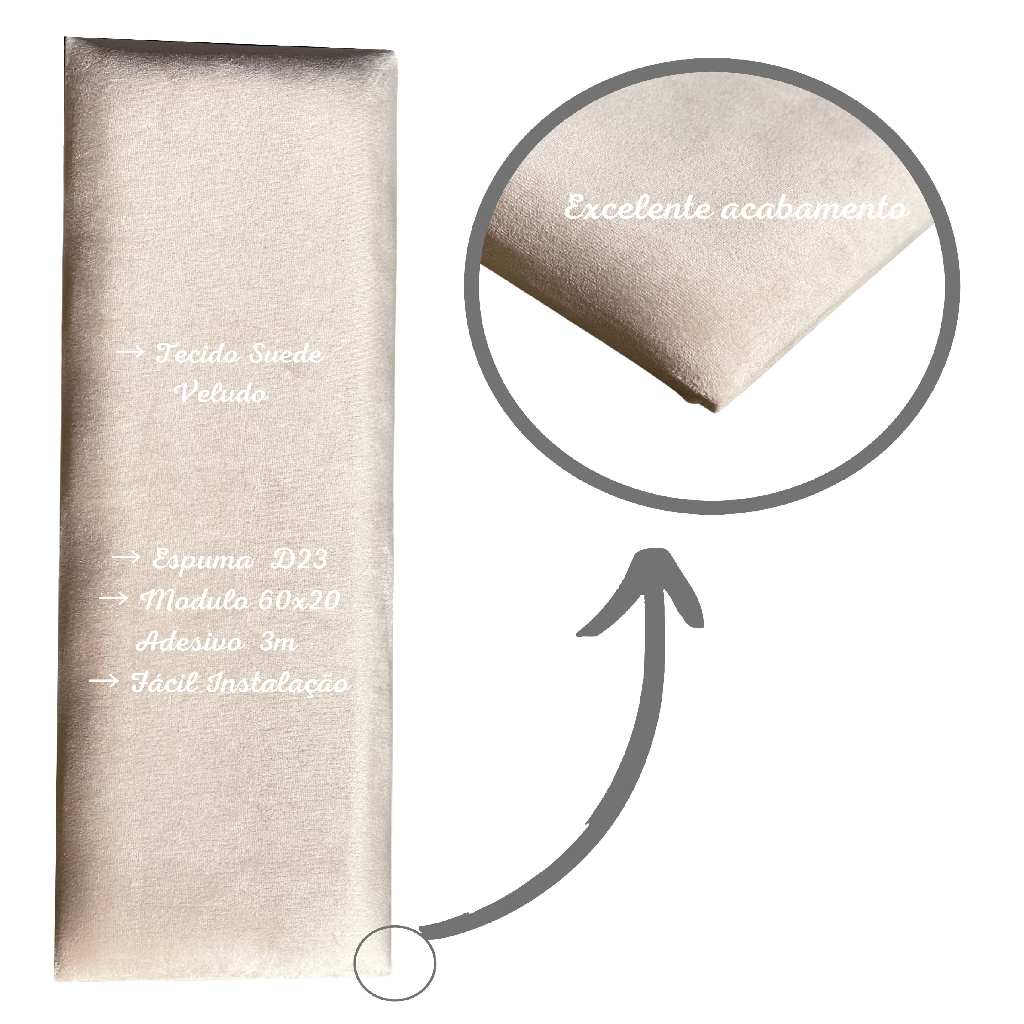 Cabeceira Estofada Modulada Adesiva Parede cama Box casal queen e king Solteiro 60x20 cm