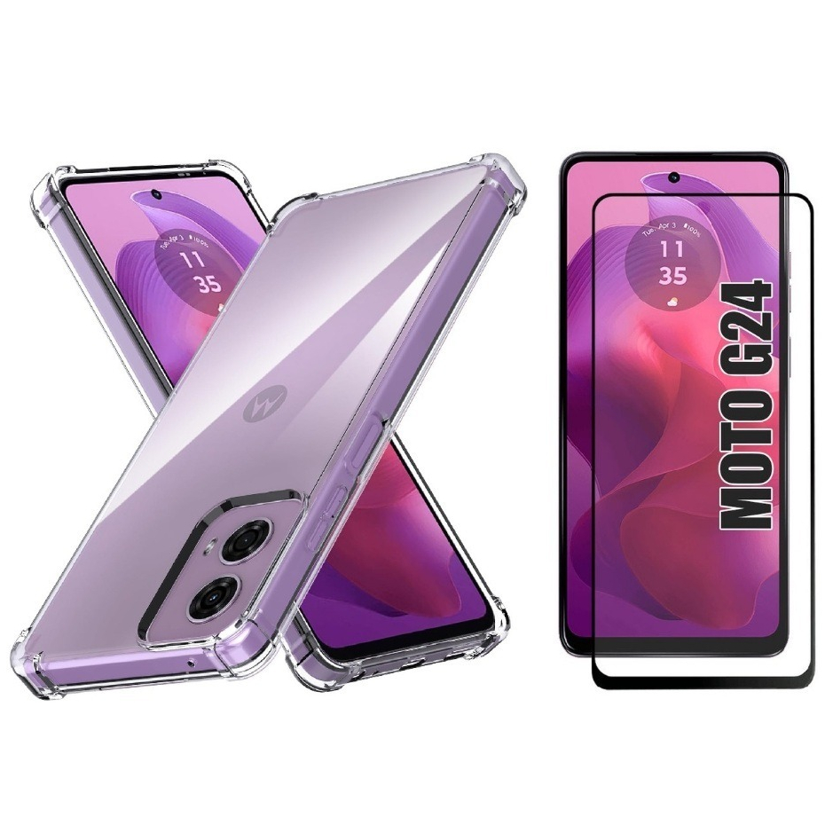 Kit Capa Anti Impacto Transparente + Película 3D P/ Moto G04/G24
