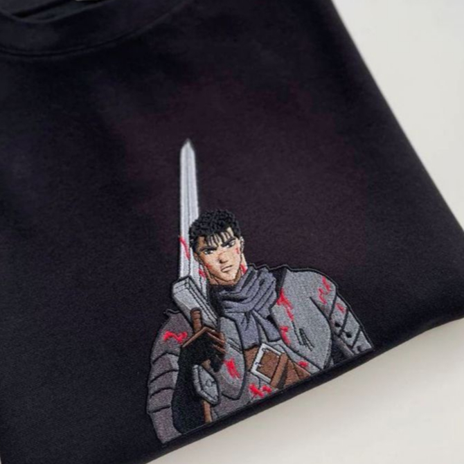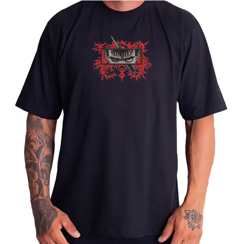 Camiseta Berserk Guts Bordada Anime Oversized 100% Algodão Streetwear