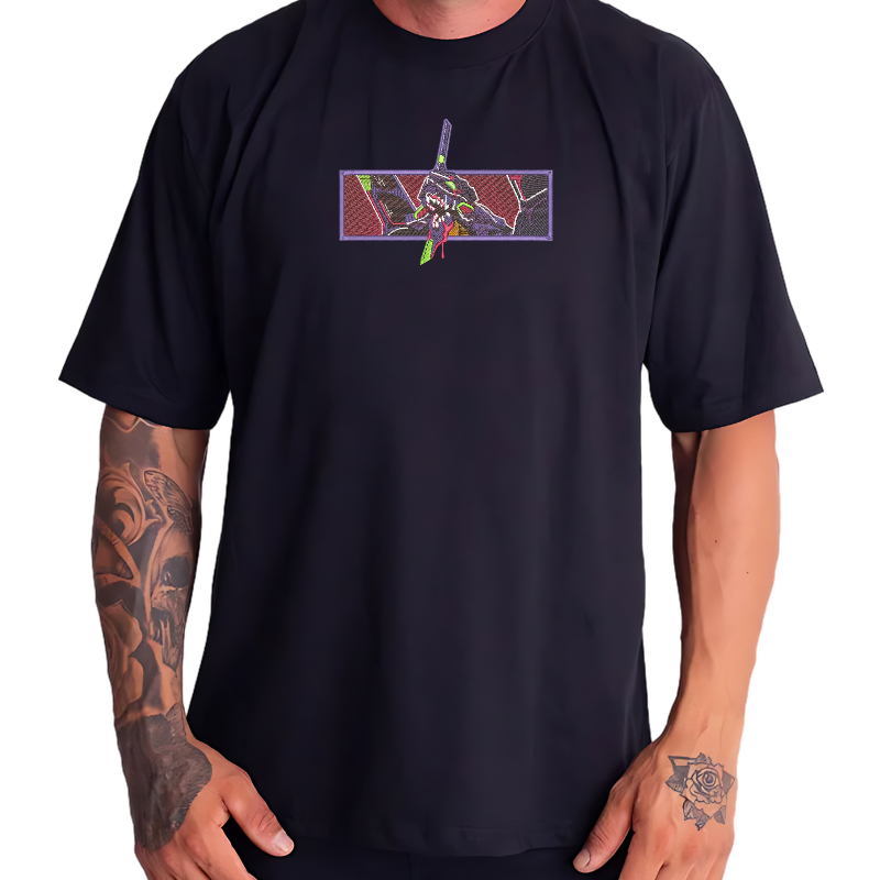 Camiseta Evangelion genesis anime Eva Bordada blusa Oversized 100% algodão streetwear