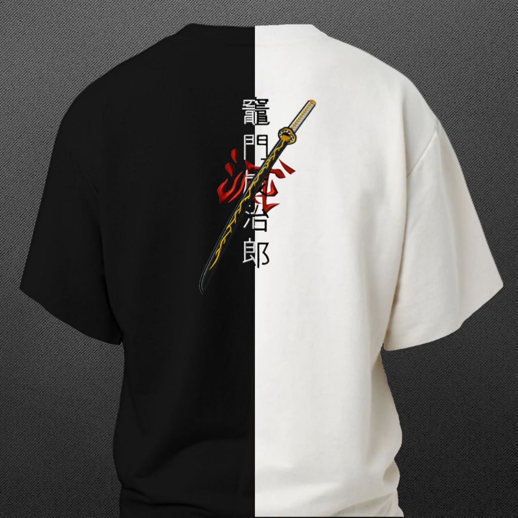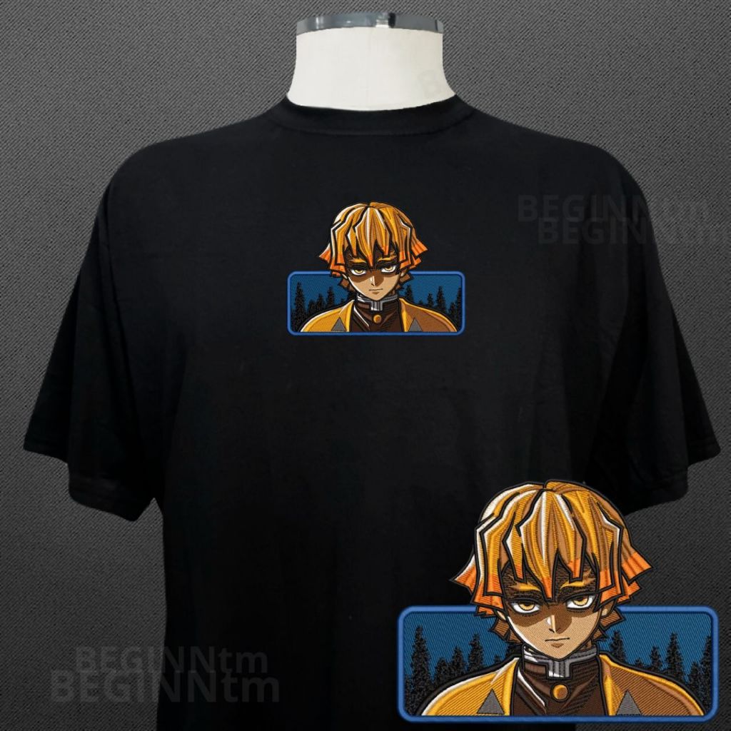 Camiseta Zenitsu bordada anime Demon slayer espada blusa 100% algodão oversized streetwear