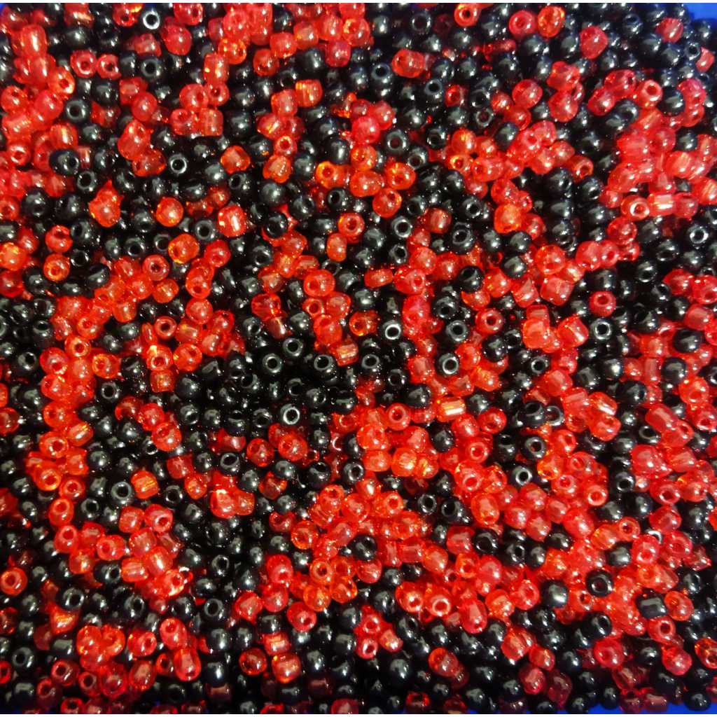 MIÇANGA DE VIDRO 400 UNIDADES VERMELHO E PRETO MIX- 4mm BIJUTERIA E ARTESANATO.