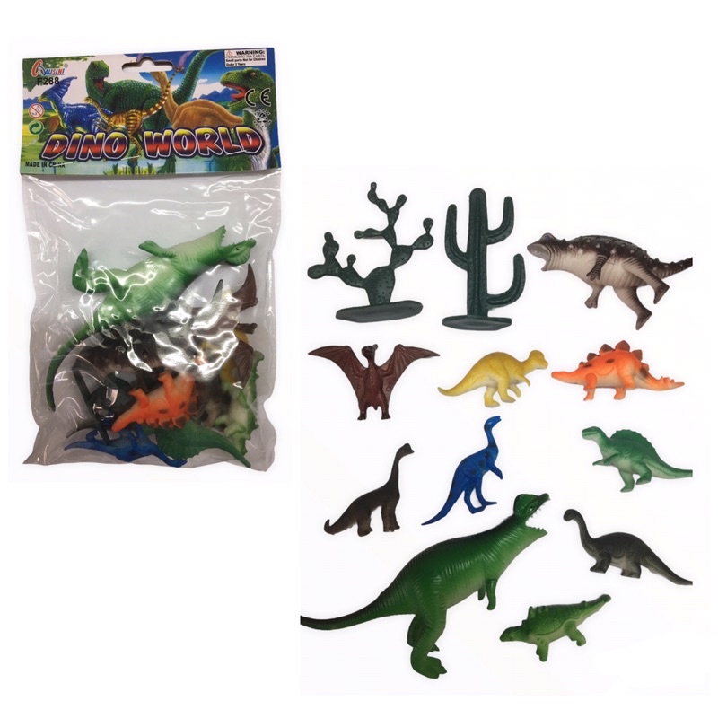 Kit com 8 Dinossauro+2 OVO de Brinquedo Dino World em Borracha