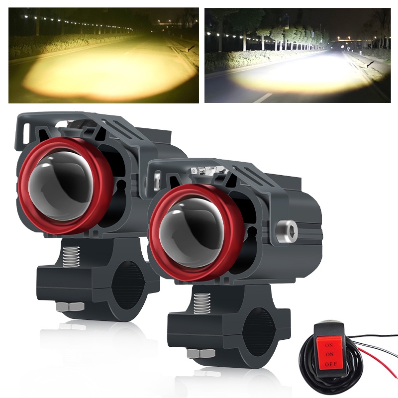 Kit de Farol de Led Para Moto Luz Auxiliar Amarelo + Branco - Farol de Milha Alta Baixa Feixe de Luz de Nebrina Para Moto Carros