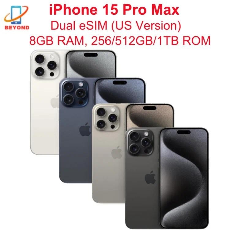 iPhone 15 Pro Max Dual eSIM 6.7 Polegadas Face ID NFC A17Pro 8GB 256GB 512GB 1TB 98 % Novo Telefone 5G
