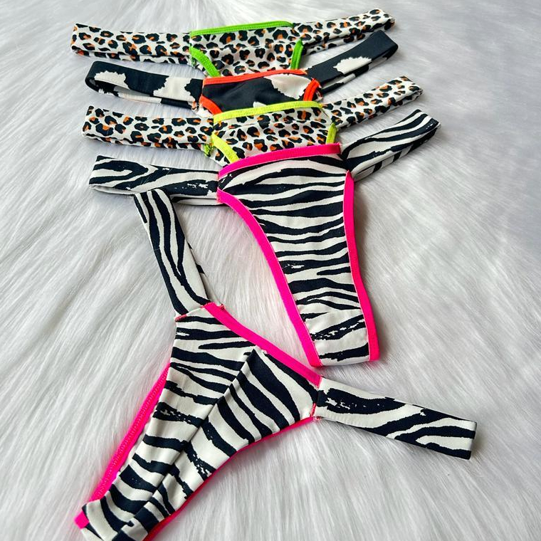 kit 5 calcinha fio duplo animal print alça regulagem neon onça string microfibra poliamida