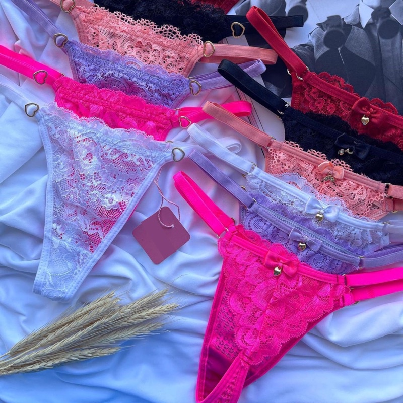Kit 4 Tangas Rendada Coloridas Calcinha Paixão com regulagem em metal