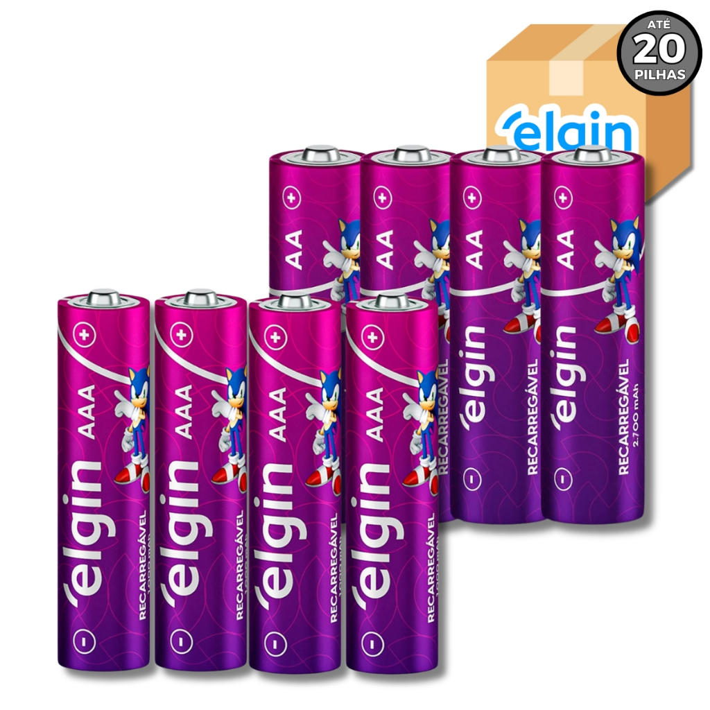 Pilhas AA ou AAA 12, 16 ou 20 Elgin Sonic Packs com 2 Unds Palito ou Pequena Elgin (Monte o seu Kit)