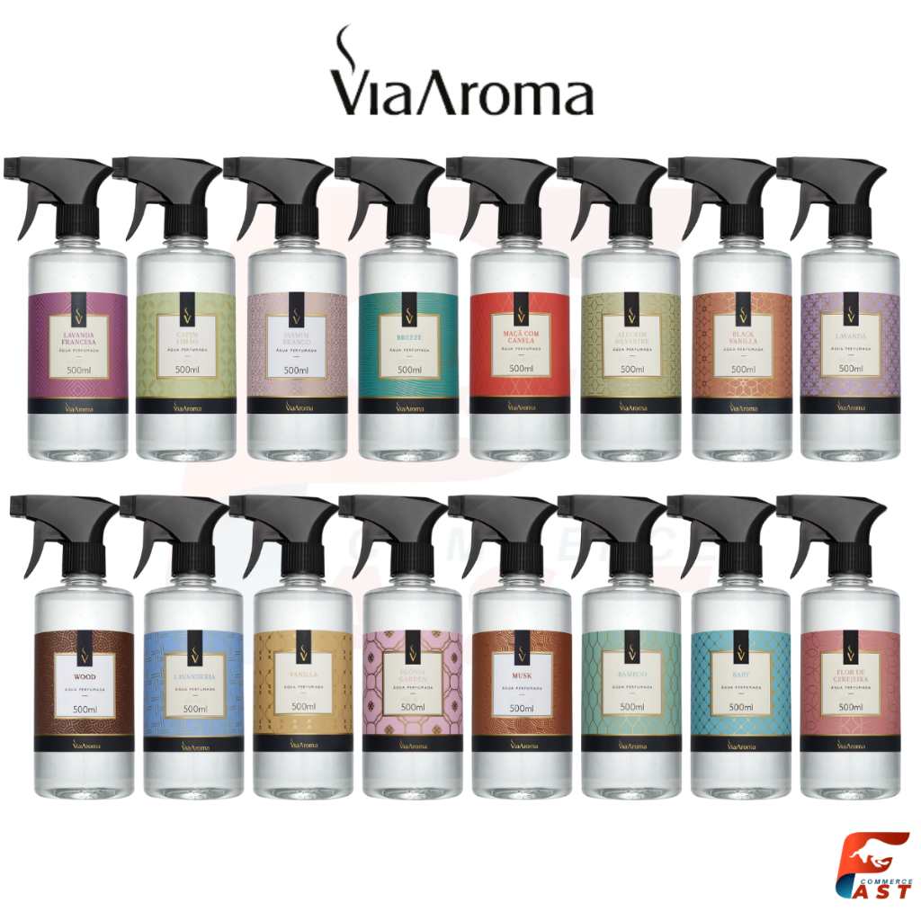 Água Perfumada Via Aroma 500ml - Água para tecidos, roupas, roupas de cama...