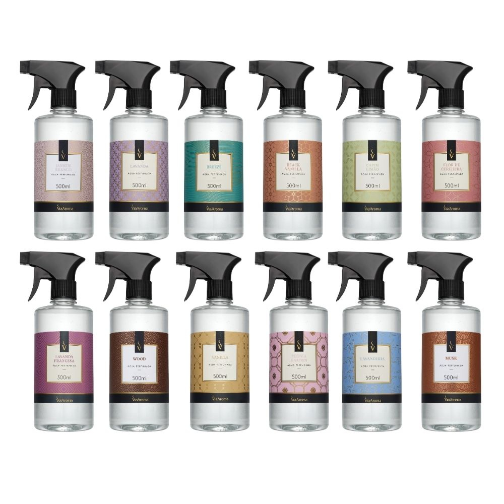 Água Perfumada Via Aroma 500ml - Água para tecidos, roupas, roupas de cama...