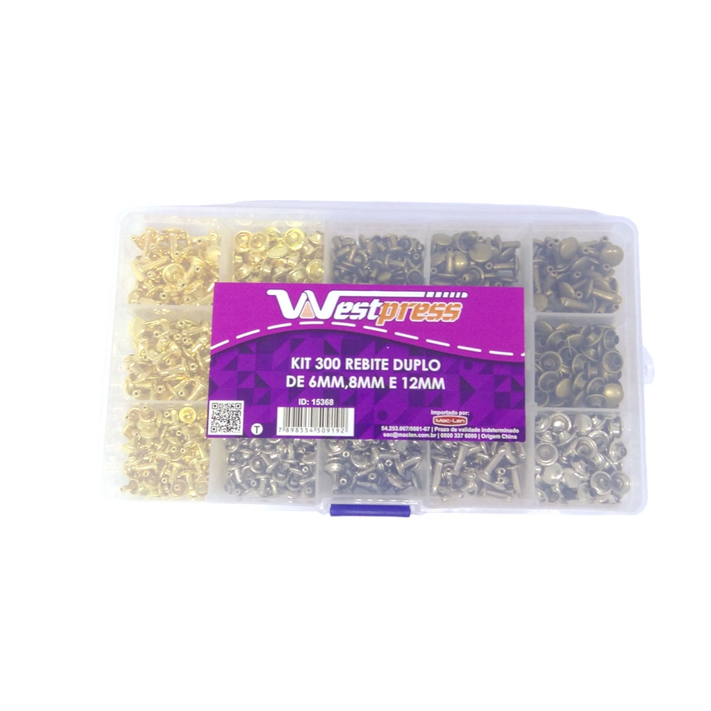 KIT 300 REBITE DUPLO DE 6MM 8MM 12MM