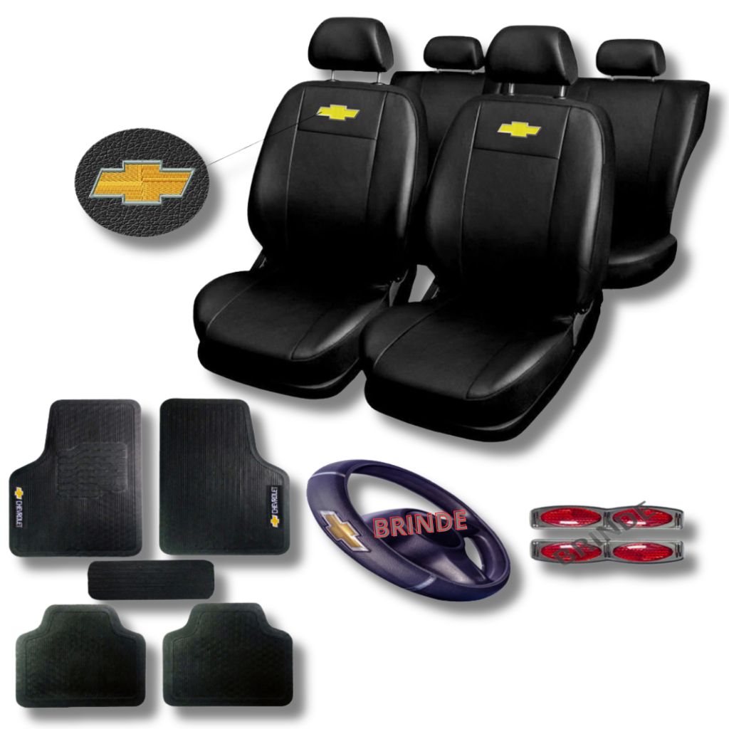 kit capa de banco de carro couro sintético + Jogo Tapete de Borracha automotivo Chevrolet Meriva