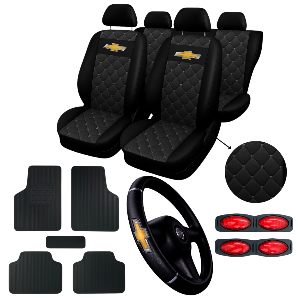 kit Capa Banco De Couro Automotivo Carro Chevrolet Corsa Celta Prisma Onix Classic + Capa de volante