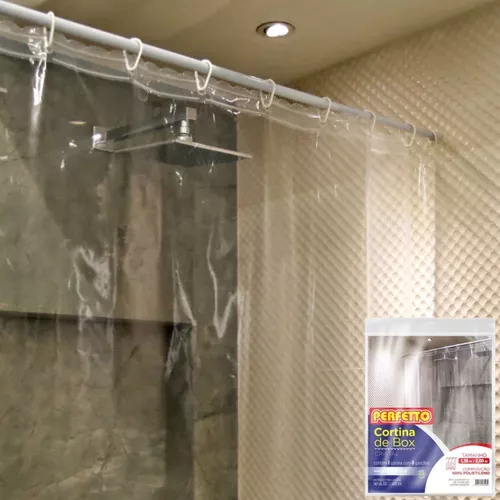 Kit 2 Cortinas para Box de Banheiro Transparente Com Ganchos Plástico 100% POLIETILENO 143 PERFETTO