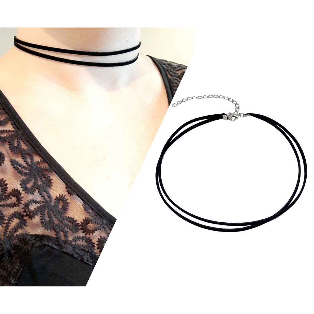 Colar Gargantilha Feminina de Camurça Dupla cor Preto