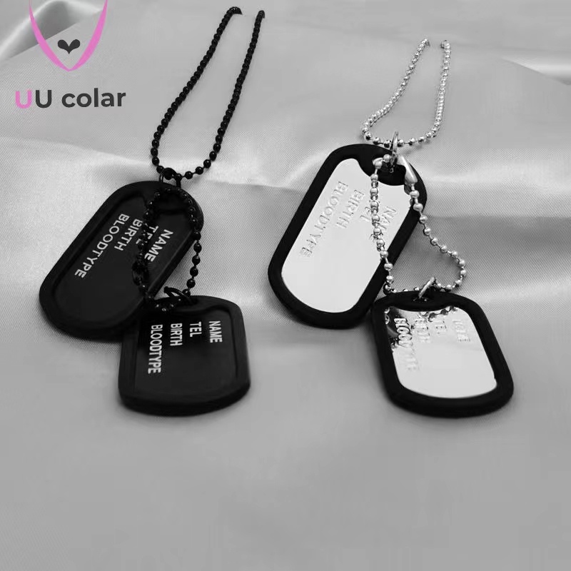 Colar masculino com pingente em estilo militar, corrente de elo duplo e tags de cão na cor preta de quatro fileiras
