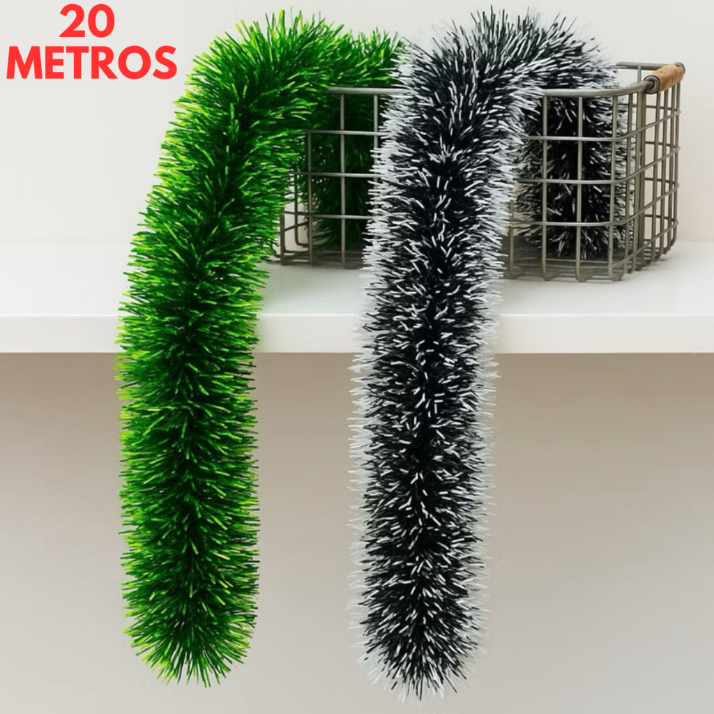 Kit 20 Metros Festão Luxo Verde Escuro e Nevado Premium Decoração Natal Atacado